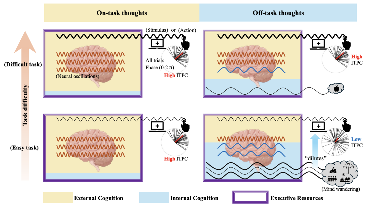 论文信息: Long, Z., Northoff, G., & Fu, X. (2025). Task difficulty modulates the effect of mind wandering on phase dynamics. Proceedings of the National Academy of Sciences, 122(22), e2416387122. https://doi.org/10.1073/pnas.2416387122