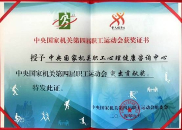 | 中央国家机关职工心理健康咨询中心荣获中央国家机关第四届职工运动会“突出贡献奖” |