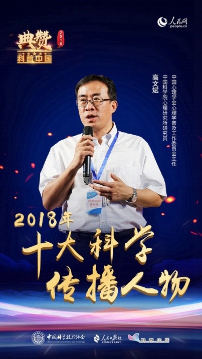 高文斌,中国科学院心理研究所研究员,中国心理学会心理学普及工作委员会主任。2014年组建成立中国科协“心理学科普传播”团队,担任团队首席科学传播专家,在全国心理科普推广中发挥了示范引领作用。提出“三结合、三加强”原则,在科普队伍、素材、形式方面提升了心理科普工作的整体水平。牵头完成我国首部心理学公众科普指导工具书——《公众心理科普纲要》,供全国心理科普工作使用。 践行“科普中国”行动,与“科普中国”合作的视频阅读量达700万;与人民网合作“关系——心理的力量”专题频道,原创点击率最高文章累计浏览量达到2.58亿。2018年发起建设“心理服务基层协作网”,提出“一网一队伍”,在全国范围内遴选与扶持300余名“心理服务基层科普讲师”。举办5场“心理行业智库建设座谈会”,与会70余位带头企业创始人,形成推进心理科普事业发展强大合力。主办“首届中国心理产业博览会”,2万余人次参与,100多家媒体多轮报道,为健全社会心理服务体系发挥重要价值。发起召开“全国心理普及工作联席(扩大)会议”,建立全国省级到地方协作机制。 图片来源:“科普中国”官网
