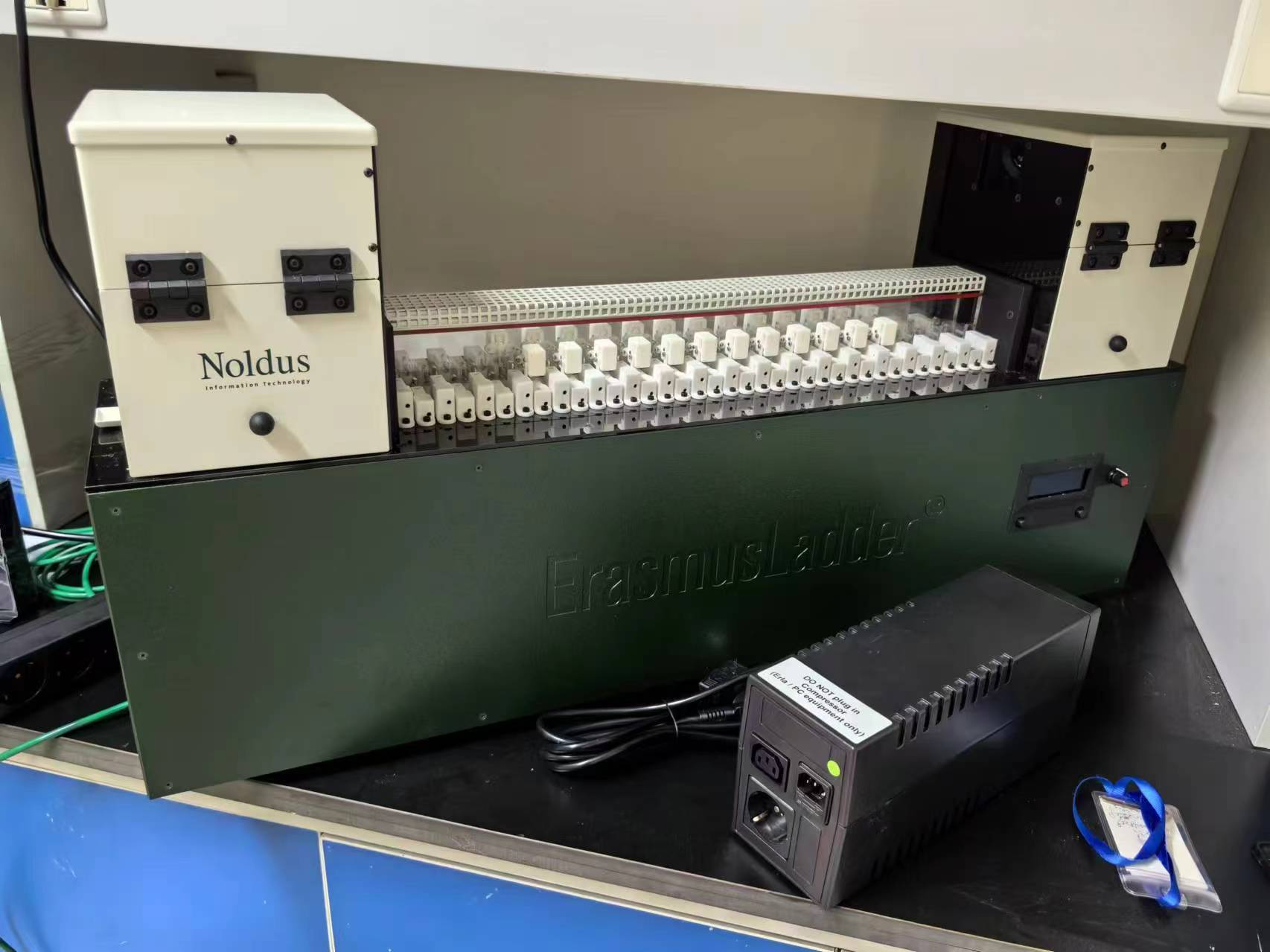 仪器名称:小鼠琴键运动行为分析系统 仪器型号:Erasmusladder 生产厂家:诺达思 收费标准:按研究所文件执行 仪器简介:该设备包含工作站1台和琴键式跑道硬件1套及配套软件1套。小鼠步道两端均留有供小鼠进出的门,配有气流压缩风速控制装置,可提供 5-7 巴(Bar)压强气流,用于刺激小鼠通过琴键步道。步道由琴键组成,分上下两层,每层37个,放置在步道左右两侧。每一侧琴键高低交错。高灵敏感应琴键可以感应到超过4克以上的重量。步道内上层感应琴键上方设有 25 根默认隐藏的障碍琴键,可以通过软件控制其自动抬起和隐藏。可提供每只小鼠单次通过的跨步时间(Step time)和单次通过的跨步距离(Step size)以及每只小鼠的离开目标箱的潜伏期和时间点,包括计时阶段内灯光亮启后和气流开始后的时间点。 功能用途:研究啮齿动物的运动表现和运动学习能力 放置位置:北楼607