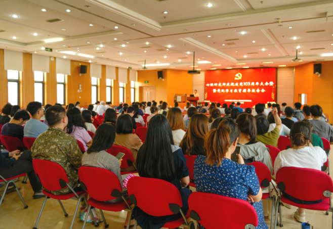 为庆祝中国共产党成立103周年,深入推进党纪学习教育,加强党史学习,推动各党支部(总支)和广大党员把思想和行动统一到抢占心理学领域科技制高点核心任务上来,切实发挥党支部的战斗堡垒和党员的先锋模范作用,7月4日下午,中国科学院心理研究所党委在和谐楼九层报告厅召开庆祝建党103周年大会暨党纪学习教育辅导会。大会由党委书记孙向红主持,心理所党员190余人参加会议。