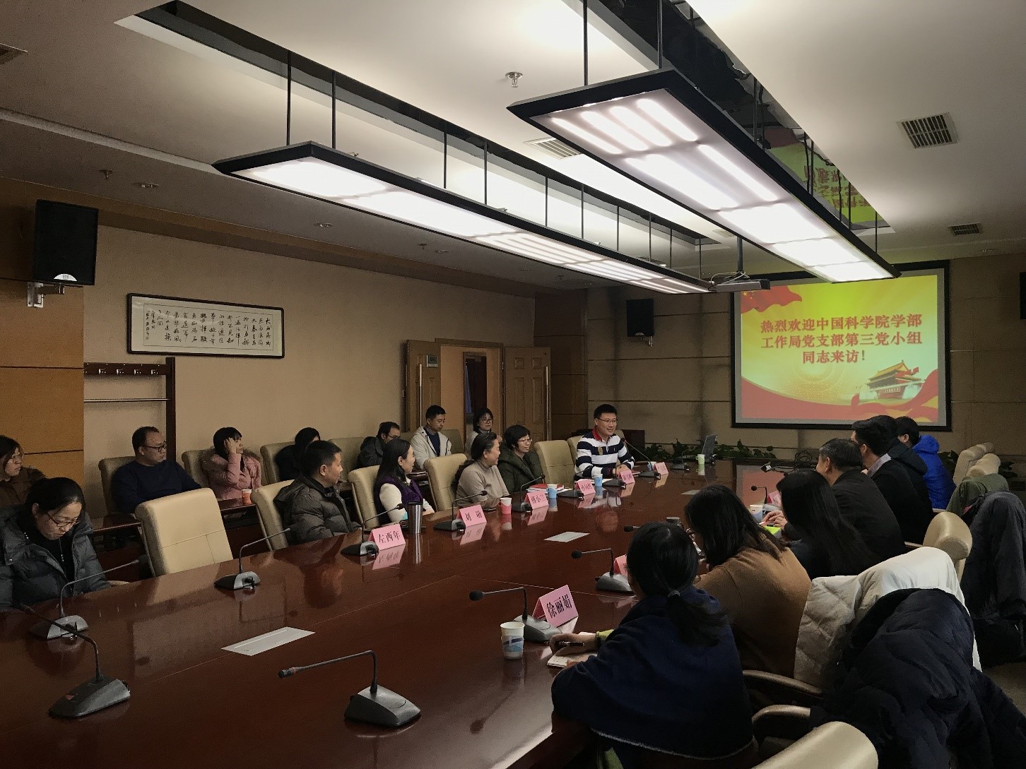 20191230日下午,中国科学院学部工作局党支部第三党小组来到中国科学院心理研究所,与心理所二室职工党支部开展联学共建活动。双方就支部党建工作及科技智库建设工作进行交流研讨。