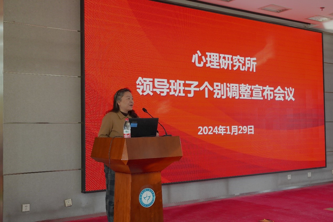 1月29日,中国科学院心理研究所召开领导班子个别调整宣布会议。中国科学院人事局副局长蔡宏志、领导干部二处副处长李熠熠出席会议。心理研究所领导班子成员、党委委员、纪委委员和科研管理骨干等50余人参加了会议。会议由蔡宏志主持。