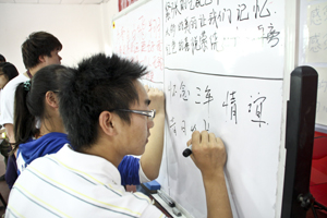 来自加拿大、香港和北京的华人志愿者们将7种颜色的画布分别交给北川中学高三年级不同班级的同学,让他们将个人的经历、情感和梦想都记录在这象征七色彩虹的画布上。同学们表达最多的愿望是:我想上大学!让所有我爱的人和爱我的人都平安、健康、快乐!